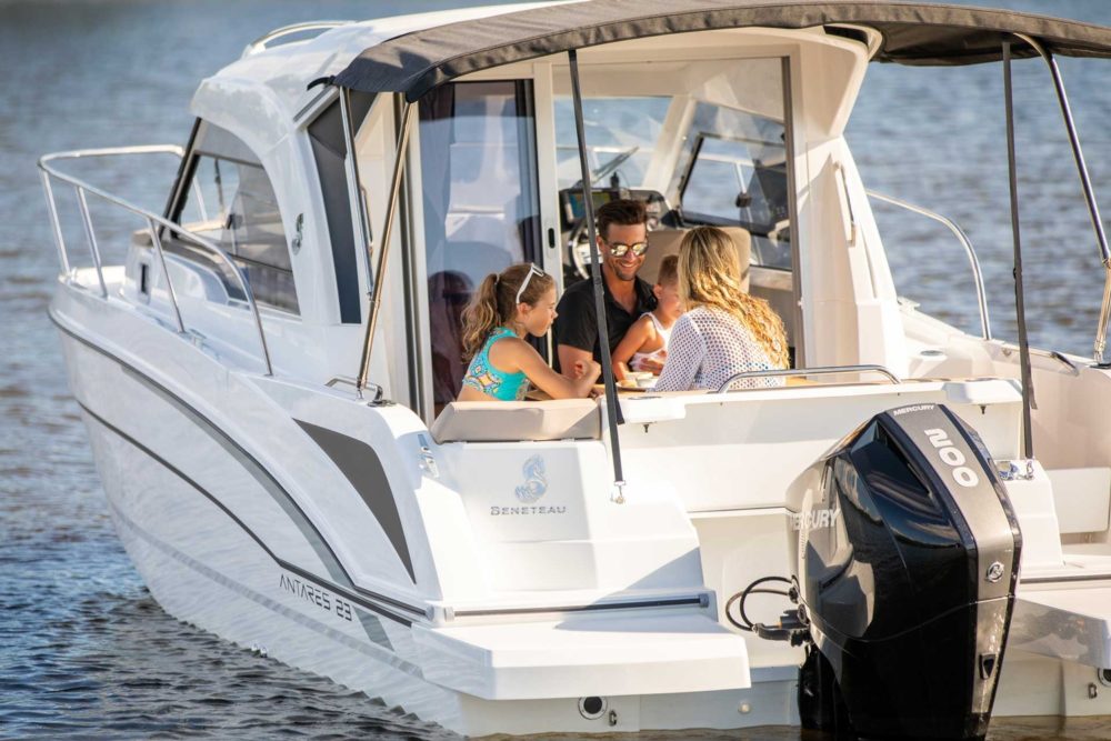Beneteau announced a partnership with Mercury Marine where boaters will now be able to enjoy the Antares and Barracuda series equipped with Mercury Marine V-6, 3.4L four-stroke outboards in North American markets. Mercury Marine, the world leader in marine propulsion and technology, will develop in collaboration with Beneteau, advanced technologies in response to market demands. This marks the first time that Beneteau will bring its historic range of Antares boats (21-27’) to the United States.