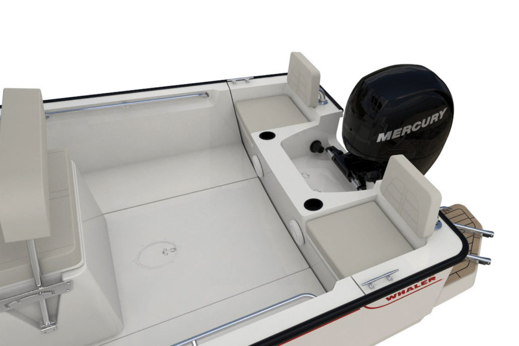 New features include an integrated forward fishbox/storage console, cushioned aft quarter seats, and several cutting-edge Raymarine electronics options. Plus, each new Montauk is available with a Teak Package that lends “vintage” style befitting Whaler’s 60th Anniversary year.