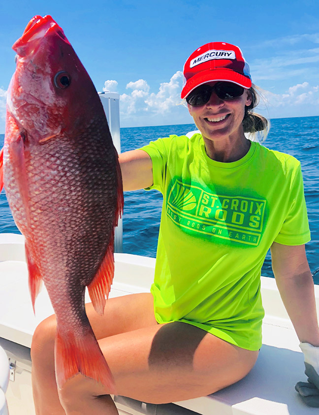 The following day again found me on the snapper grounds, accompanied by my wife, Kim, and friends. The bite was on, and Kim quickly hooked up. Her drag screamed as a big fish surged for the bottom. Immediately upon reaching it, Kim’s line broke. Disappointment again filled the boat.