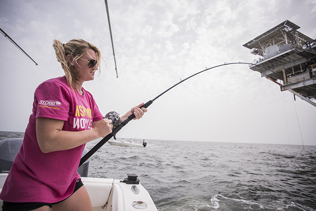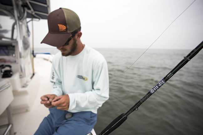 I’ve found the conventional Mojo Jig models to be perfect (I can’t get away from my 5’8” extra-heavy no matter what I’m fishing for), but Kim prefers the spinning models. She finds that, with her size and body frame, she gets more leverage by having the rod under her forearm when horsing a strong fish.