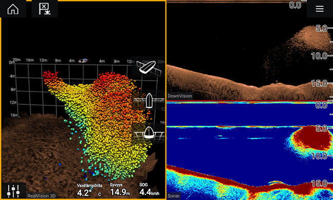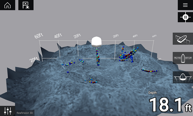 Not only does Raymarine RealVision helps anglers locate fish off both sides of the boat and below, it reveals exactly how deep in the water column.