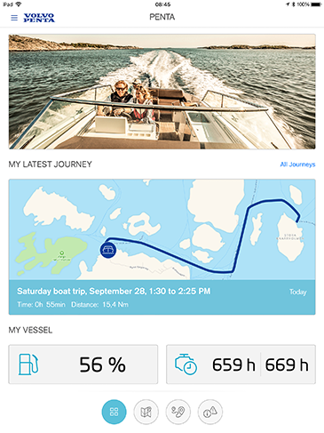 - Key information is always stored within the app, such as the amount of fuel left, engine hours and the latest journey. The app also keeps a list of all previous journeys, allowing boat owners to revisit their favorite trips. In the map function, owners will be able to see the position of the boat when they were last connected.