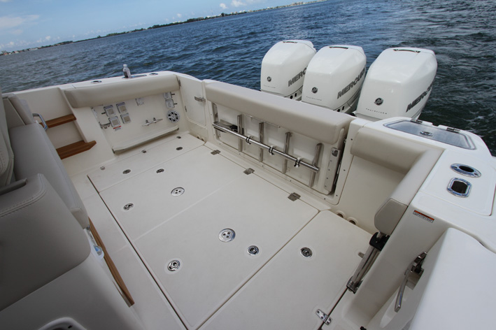 Although the layout is opulent, traffic remains fluid and a family can easily move around on this deck.