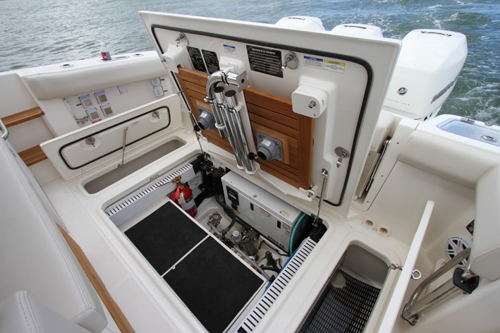 As always with Boston Whaler, the manufacturing quality approaches the irreproachable. Accessories are in very good condition and hardware is at the top of the range. The finish is in keeping with meticulous attention to detail. Finally, the equipment is up to the reputation of the brand including courtesy lights, side door, live well, Fusion sound system, fuel and water tanks, rear folding bench and coolers. If that’s not enough, the list of options is still long. The only regret is that the grill is optional …
