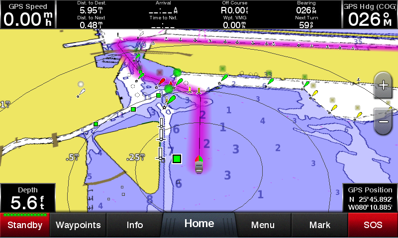 The GPS part features a new 10 Hz integrated GPS receiver that allows you to update the data ten times per second for smoother screen refreshments and optimized accuracy. Using BlueChart G2 Vision HD mapping, the device can also record up to 5000 waypoints, 100 itineraries and up to 50 recorded tracks.