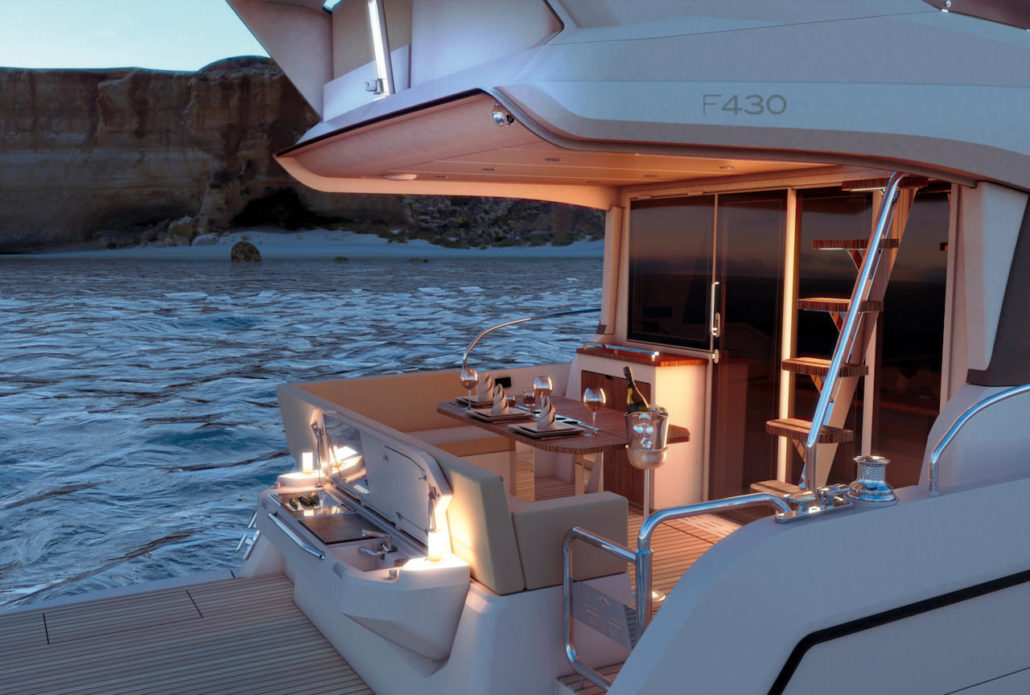 On the new Sealine F430, you will find four pleasant lounge areas. Whether in the lounge, the cockpit, or the Flybridge, each lounge offers space for up to six people and is designed so that passengers can sit facing each other. The new F430 thus has a breathtaking space that is usually only available on 50-foot yachts. Thus, the Sealine F430 has two outdoor spaces and an indoor kitchen, perfect for all occasions.