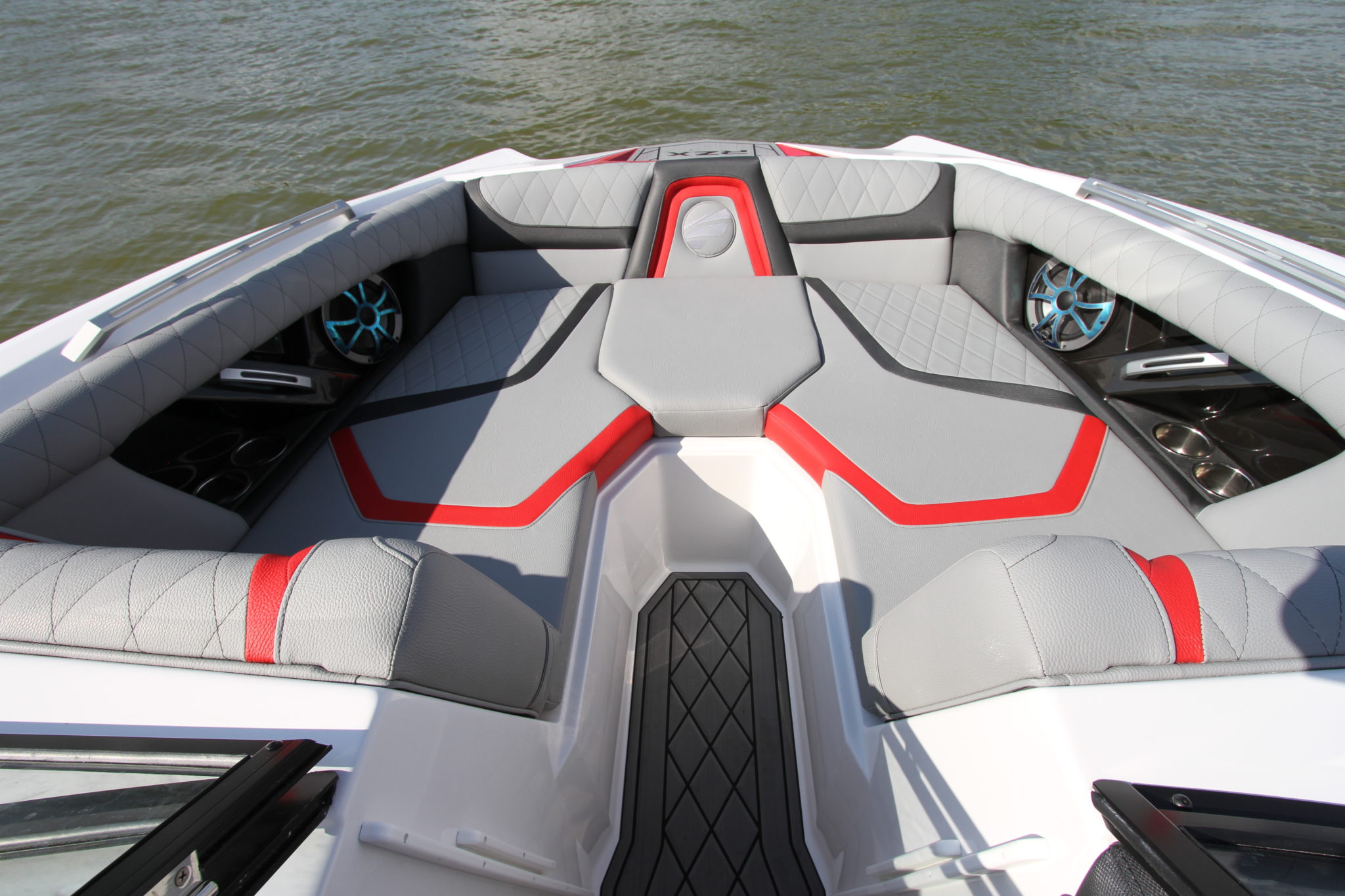 To sculpt the wave, the Tigé uses a patented hull called ConvexV Hull, which improves the flow of water to naturally create a wave. The RZX2 also incorporates the third-generation TAPS system developed by the brand. Specifically, it is a set of three movable flaps controlled from the dashboard to increase, reduce or guide the wave on one side or another according to the desires of the rider, his level and the activity. Added to this is the Surf + Wake XL Ballasts, an assembly carrying 2 700 Lbs of ballast that can be filled in 5 to 10 minutes. If necessary, you can also add 1 200 Lbs of additional ballasts. This combination of different technologies (hull, Taps and ballasts) is deep and firm enough to allow for an excellent wave, deep and firm enough.